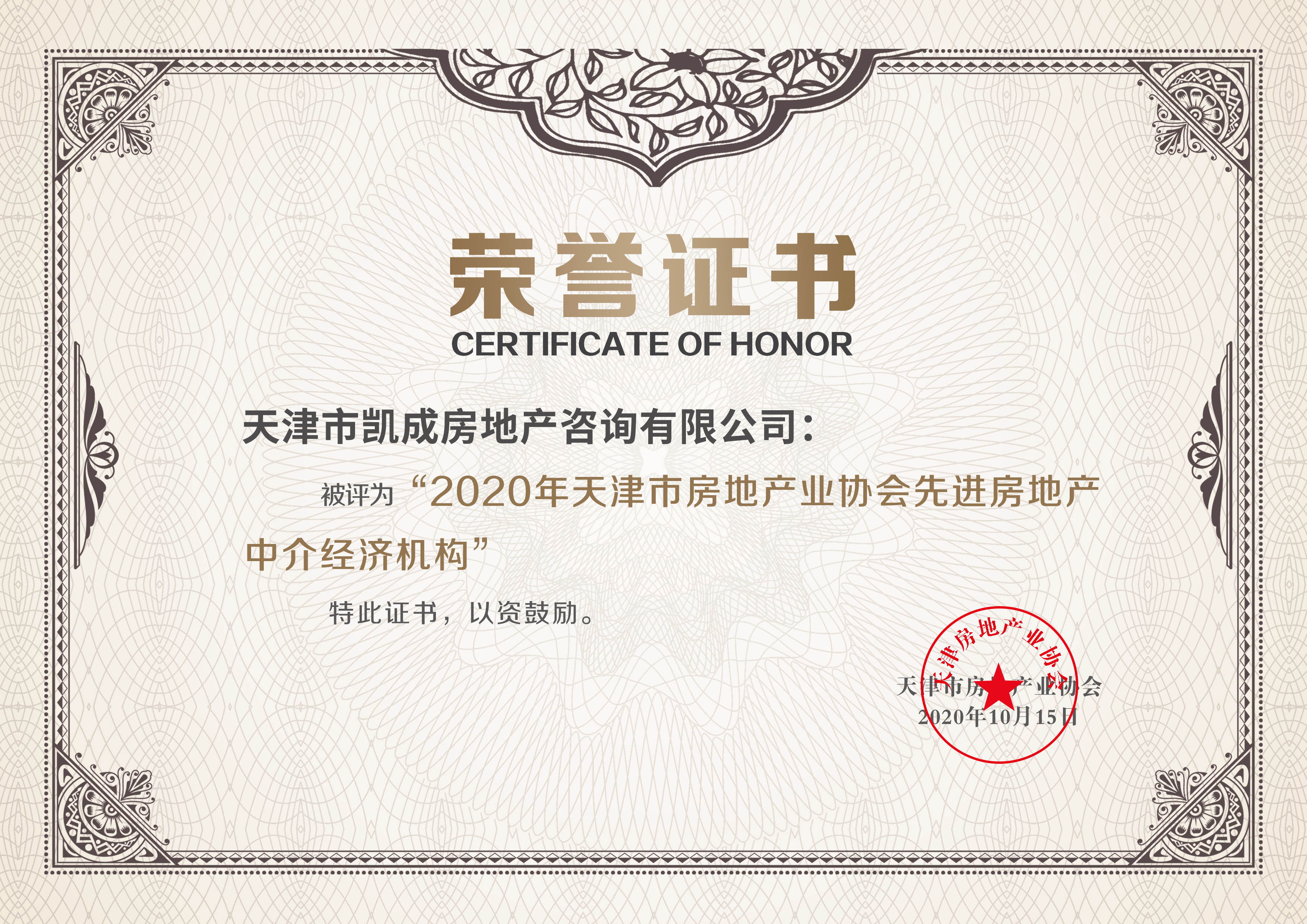 企业荣誉 - 天津市凯成房地产咨询有限公司